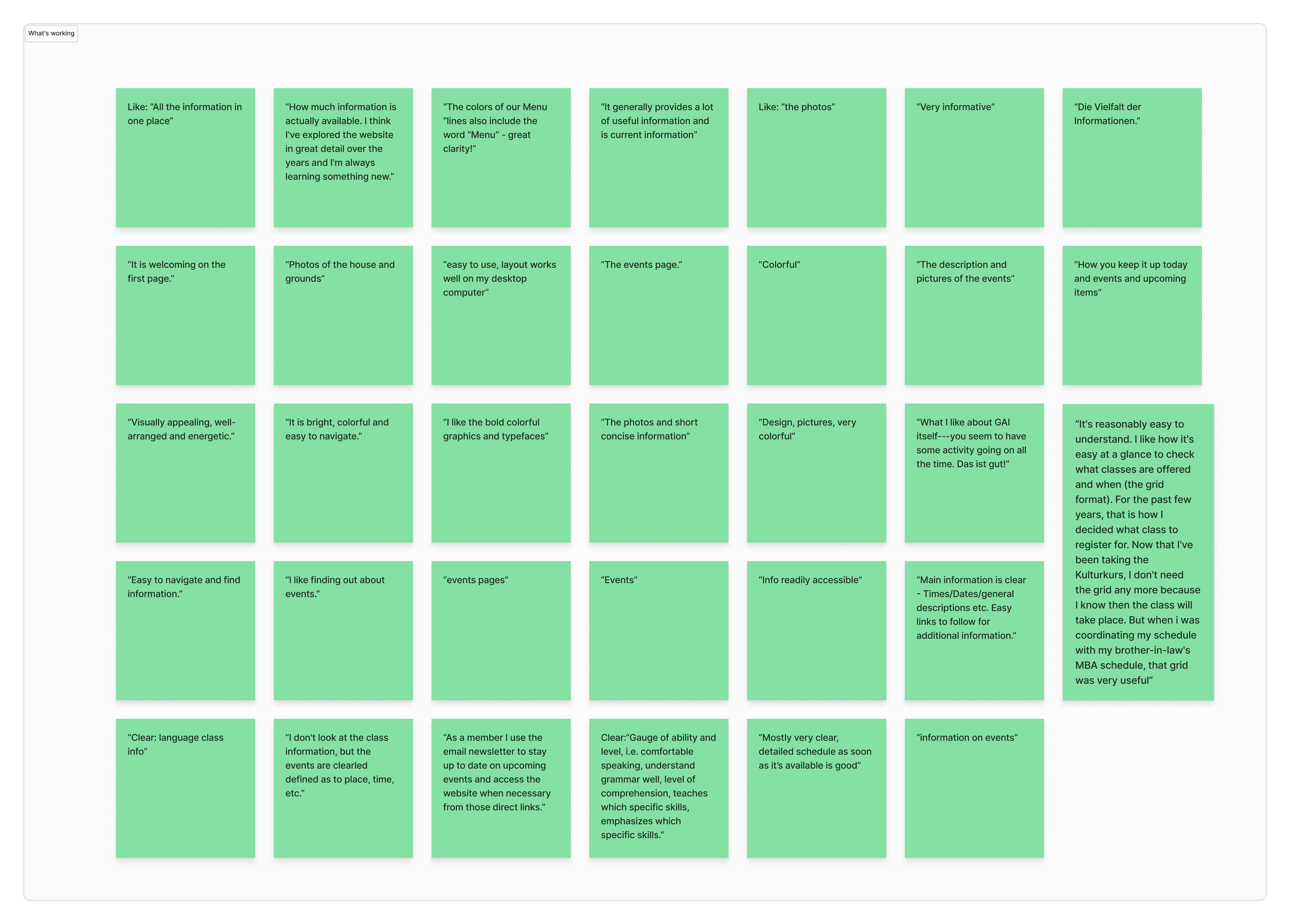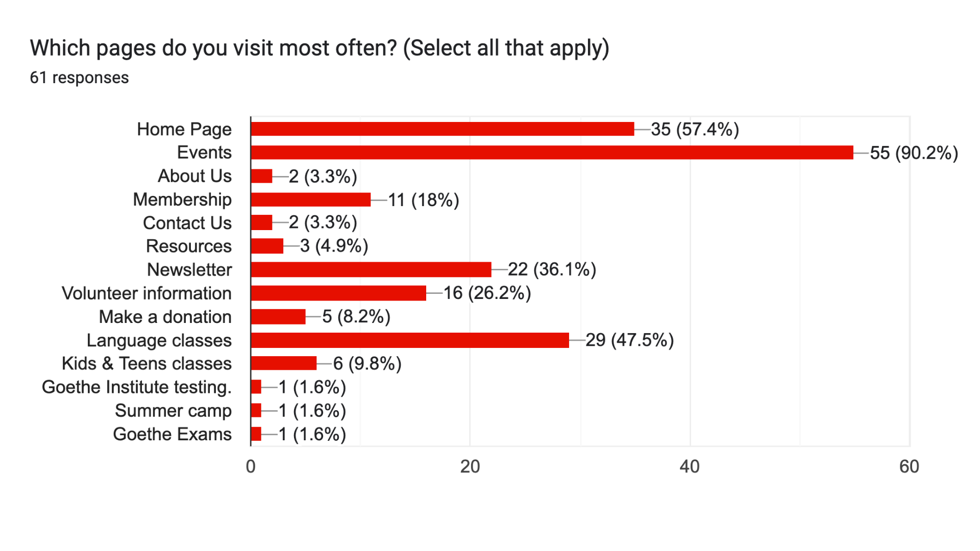 Surveyed 62 members and visitors using closed and open-ended questions. Open responses revealed navigation confusion, fragmented content, and difficulty finding events, language classes, and donation information.